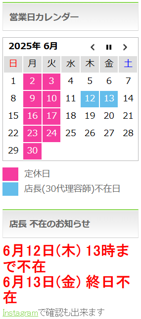 【6月 営業日のお知らせ】